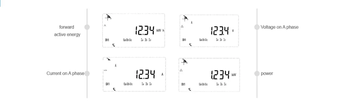 - U、I、P、Q、S、PF、kWh、kvarh