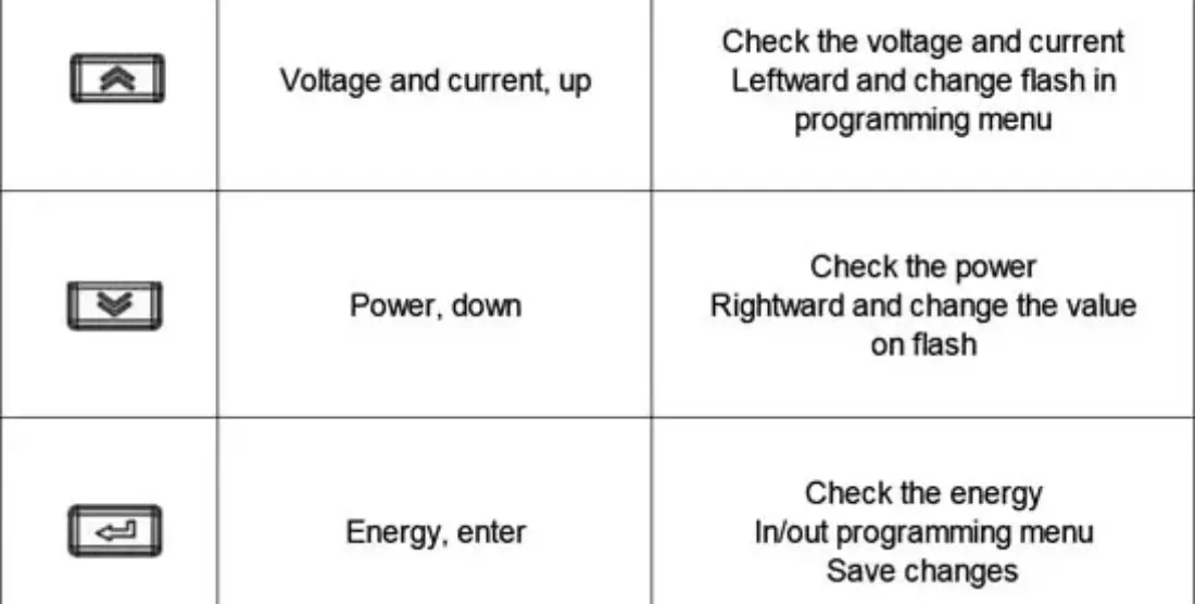 Function Function description Function provide Measurement of kWh Active kWh (positive and negative) ■ Reactive kWh (positive and negative) ■ A. B, C split phase positive active energy ■ Measurement of electrical parameters U、I、P、Q、S、PF、F ■ Measurement of harmonics 2~31ST Voltage and current harmonic ■ LCD Display 12 bits section LCD display, background light ■ Key programming 3 keys to communication and set parameters ■ Pulse output Active pulse output ■ Multi-tariff and functions Adapt 4 time zones, 2 time interval lists, 14 time interval by day and 4 tariff rates □ Max demand and occurrence time □ Frozen data on last 48 months, last 90days □ Date, time □ Communication Communication interface: RS485, Communication protocol: MODBUS-RTU ■ “■” means standard, “□” means optional. Specification