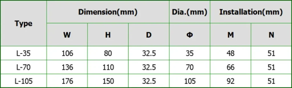 | L-35 | 110 | 80 | 32.5 | 35 | 48 | 51 |