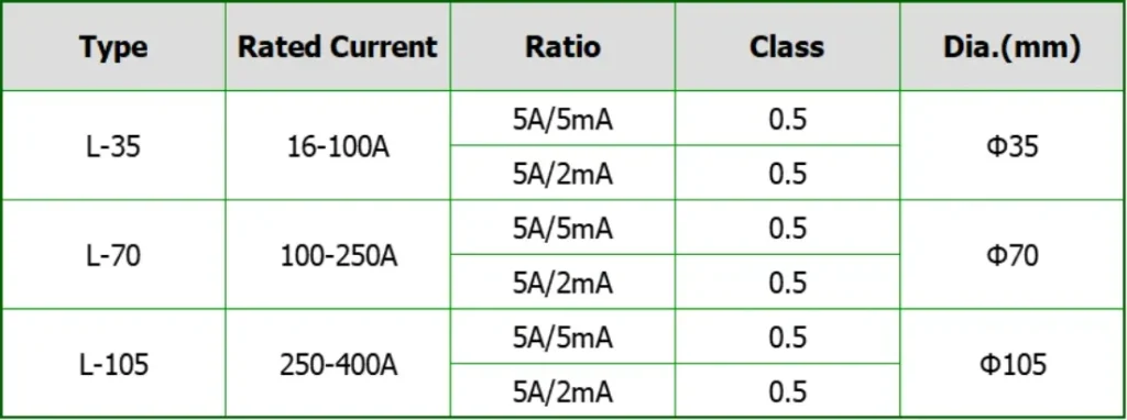 L-35 | 5A/5mA | 0.5 | 16-100A | φ35 |