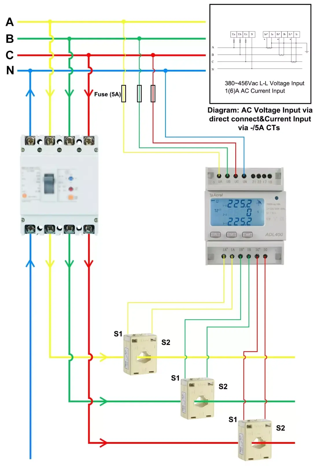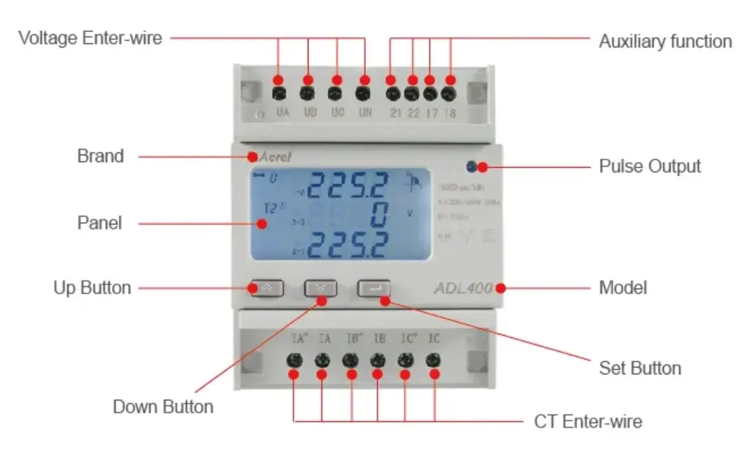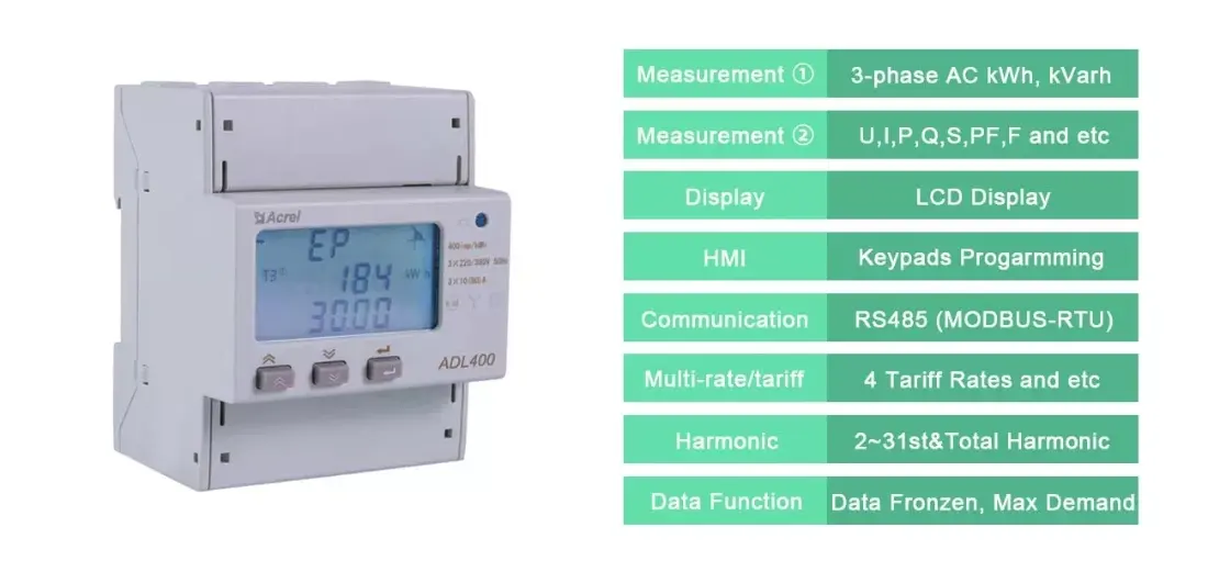 Potencia activa, reactiva, aparente, error ±0,5℅